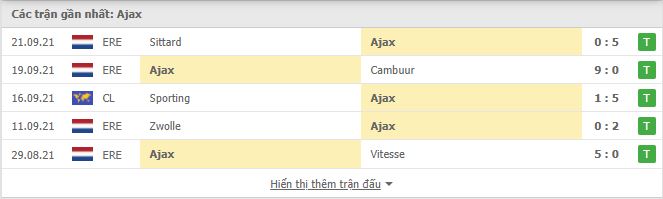 Thống kê phong độ gần đây Ajax vs Besiktas