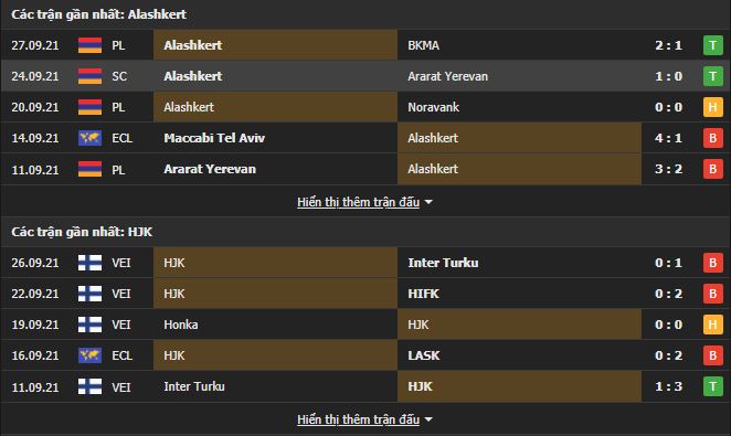 Phong độ gần đây Alashkert vs HJK Helsinki: