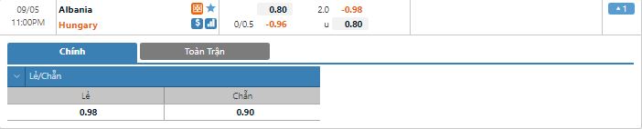 Bảng tỷ lệ kèo trực tuyến trận đấu Albania vs Hungary: