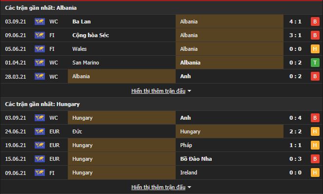 Phong độ gần đây Albania vs Hungary: