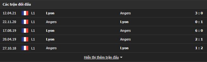 Thành tích đối đầu Angers vs Lyon: