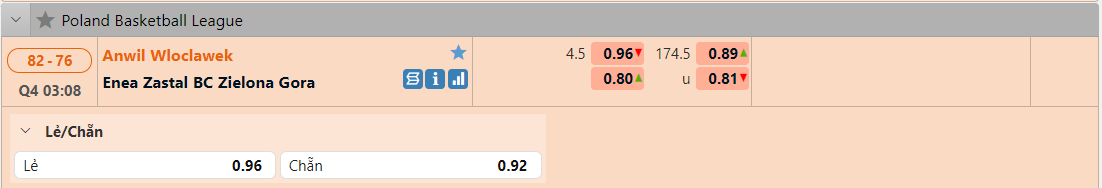 Bảng tỷ lệ kèo Anwil Włocławek vs Zastal Zielona Góra