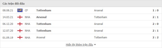 Thành tích đối đầu Arsenal vs Tottenham