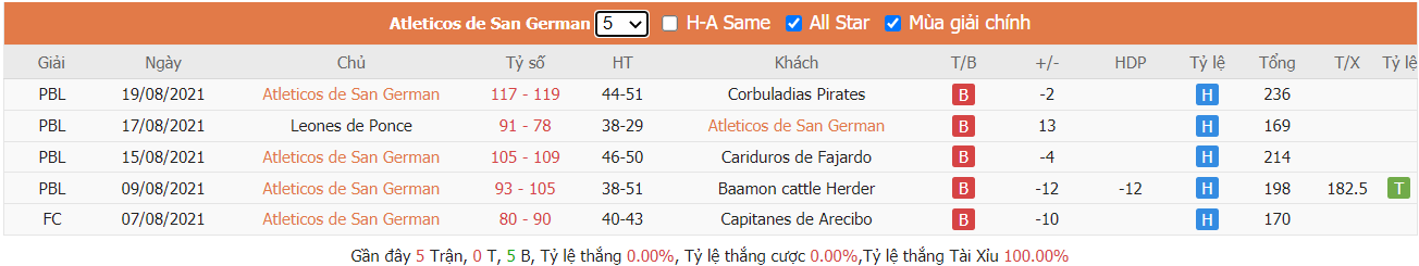 - Phong độ Atléticos de San Germán