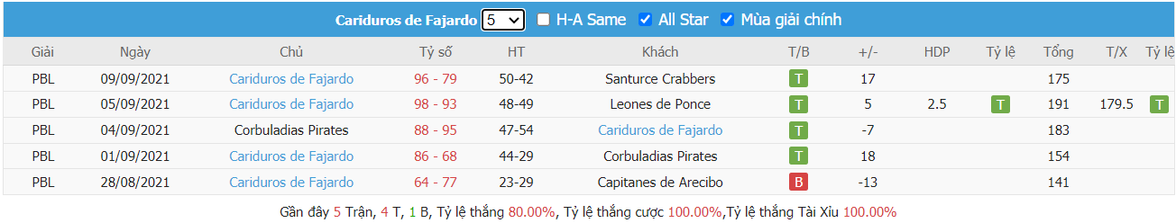 Thống kê cho thấy cả hai đội đều đang duy trì được sự hiệu quả cần thiết trên mặt trận tấn công khi mà Atléticos de San Germán đã ghi được trung bình tới 82 điểm mỗi trận qua 5 trận ra sân gần nhất, từ đó dẫn tới 5 trên 7 trận ra sân gần nhất của đội bóng này đều đã khép lại với các kết quả chung cuộc nổ tài. Trong khi đó Cariduros Fajardo cũng không quá kém cạnh khi cũng đã bỏ được vào rổ các đối thủ trung bình lên tới 103 điểm mỗi trận và để mất trung bình lên tới 78 điểm trong 2 trận ra sân gần nhất năm nay. Từ đó cho thấy khả năng bùng nổ tỷ số ở trận đấu tới càng được đánh giá cao hơn.