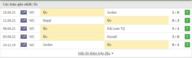 Thống kê phong độ gần đây Australia vs Trung Quốc