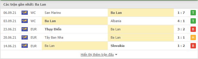 Thống kê phong độ gần đây Ba Lan vs Anh