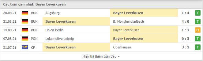 Cũng giống giai đoạn đầu mùa giải năm ngoái, hàng công của Bayer Leverkusen đang mang đến những màn trình diễn đầy cảm xúc. 12 bàn thắng ở 4 trận đấu thuộc khuôn khổ các giải đấu chính thức cùng điểm tựa Bay Arena là đủ để tin các học trò HLV Gerardo Seoane sẽ không ngại chơi đôi công với các vị khách. Thống kê trong quá khứ cũng cho thấy 4/5 lần gặp nhau gần nhất giữa hai đội xuất hiện ít nhất 4 lần lưới rung. Do đó, lựa chọn tài được nhận định sẽ mang tới sự yên tâm cho các nhà đầu tư.