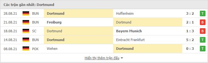 Thống kê phong độ gần đây Bayer Leverkusen vs Borussia Dortmund