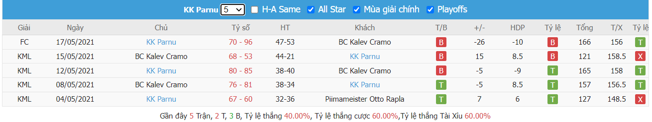 - Phong độ Pärnu Sadam