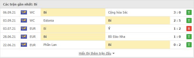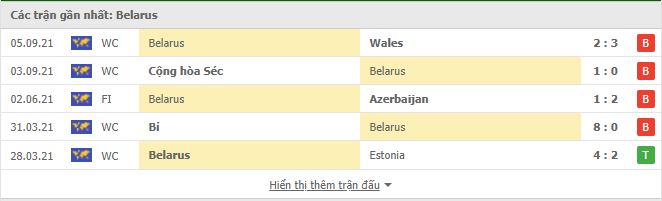 Thống kê phong độ gần đây Belarus vs Bỉ