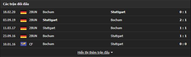 Thành tích đối đầu Bochum vs VfB Stuttgart: