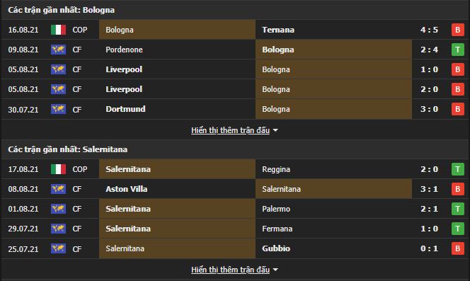 Phong độ gần đây Bologna vs Salernitana: