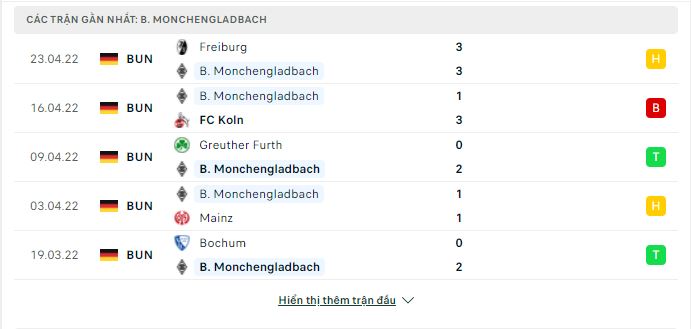 Thống kê phong độ gần đây Borrussia Monchengladbach vs RB Leipzig