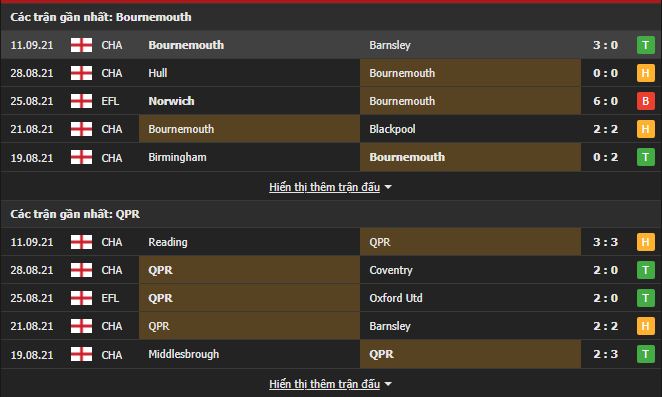 Phong độ gần đây Bournemouth vs QPR: