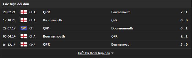 Thành tích đối đầu Bournemouth vs QPR: