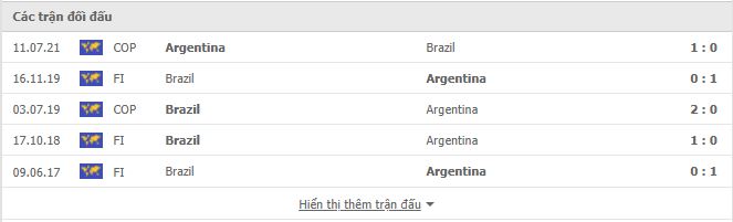 Thành tích đối đầu Brazil vs Argentina