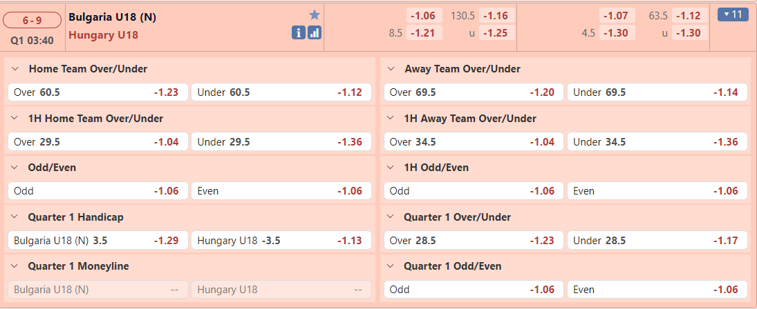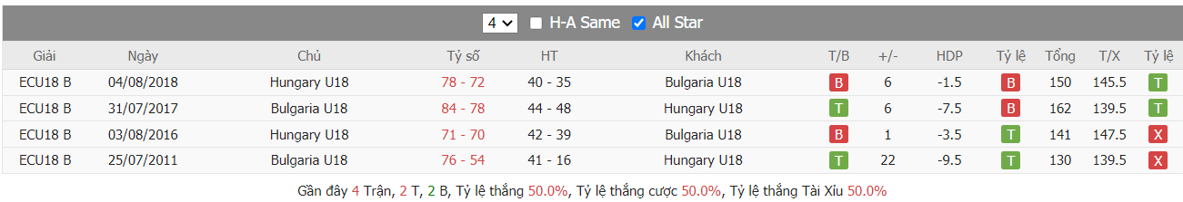 Bảng tỷ lệ kèo Bulgaria U18 vs Hungary U18