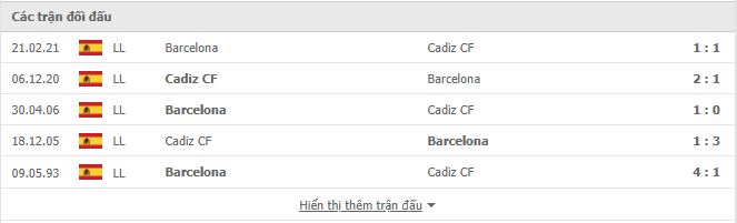 Lịch sử đối đầu Cadiz vs Barcelona