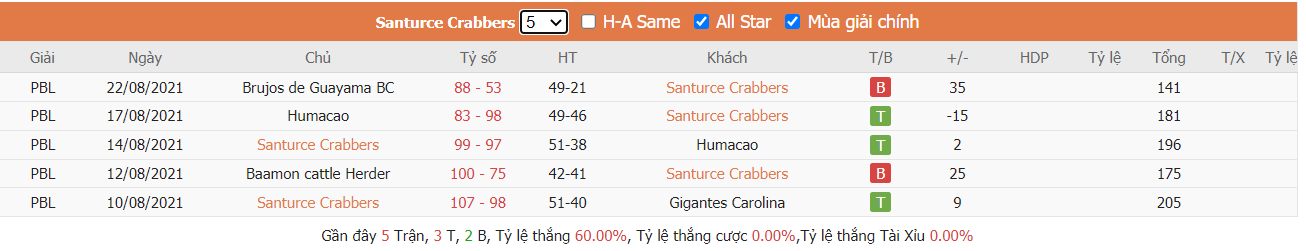 - Phong độ Cangrejeros de Santurce