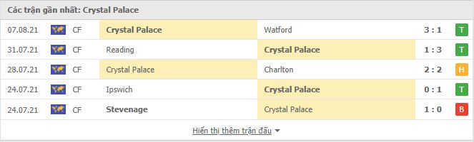 - Phong độ Crystal Palace