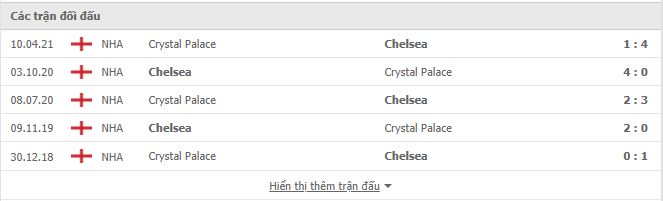 Thống kê phong độ gần đây Chelsea vs Crystal Palace