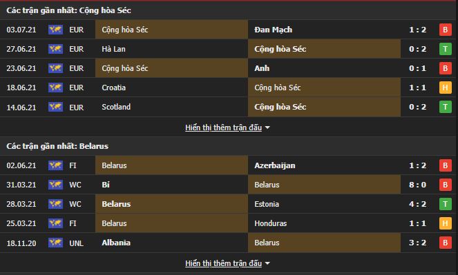 Ngoài ra, Belarus luôn được xem đối thủ ưa thích với các cầu thủ Cộng hòa Séc. Cụ thể, Cộng hòa Séc toàn thắng cả 4 lần đụng độ với Belarus và trận nào cũng thắng với cách biệt từ 2 bàn thắng trở lên. Do đó, không khó để Cộng hòa Séc giành được chiến thắng đậm trận này. Kèo châu Á, Cộng hòa Séc chấp 1.5/2 và tài xỉu 2.5, chọn đội tuyển Cộng hòa Séc và tài đặt kèo hợp lí hơn cả.
