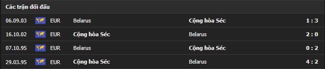 Thành tích đối đầu Cộng hòa Séc vs Belarus: