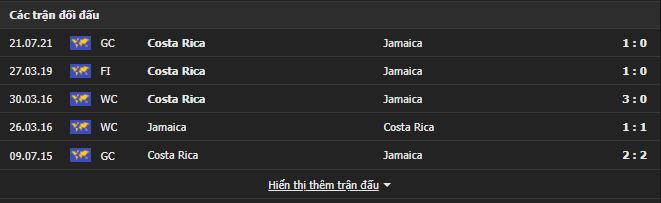 Thành tích đối đầu Costa Rica vs Jamaica: