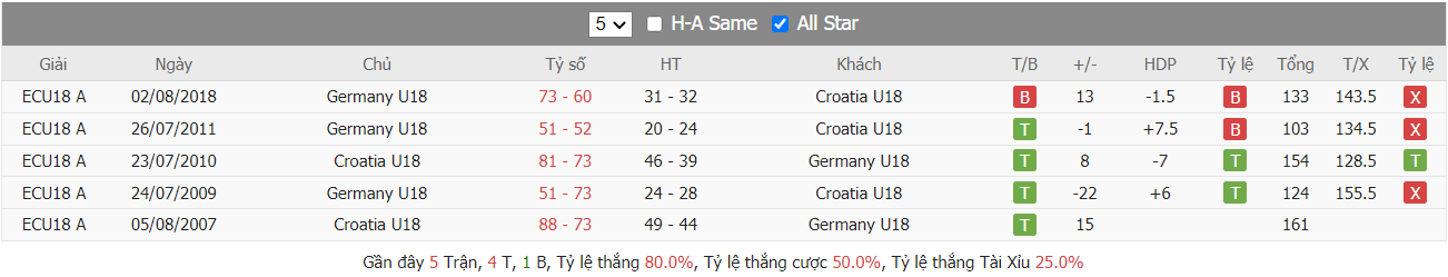 Thành tích đối đầu Croatia U18 vs Germany U18