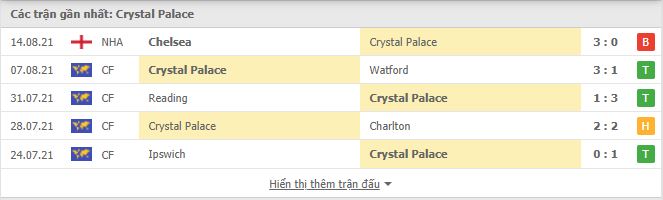 Thống kê phong độ gần đây Crystal Palace vs Brentford