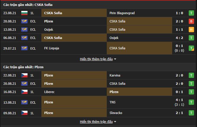 Phong độ gần đây CSKA Sofia vs Viktoria Plzen: