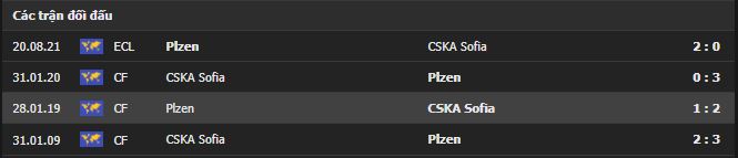 Thành tích đối đầu CSKA Sofia vs Viktoria Plzen: