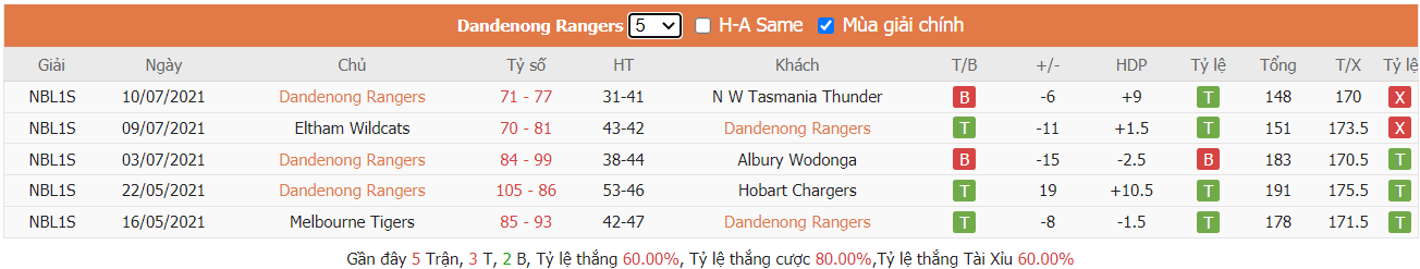 - Phong độ Dandenong Rangers