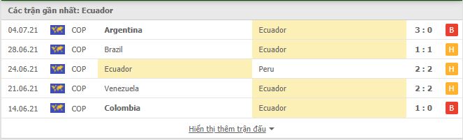 Thống kê phong độ gần đây Ecuador vs Paraguay