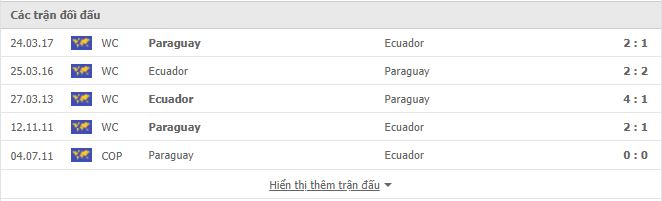 Thành tích đối đầu Ecuador vs Paraguay