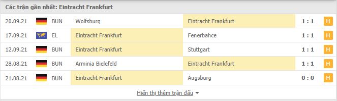 - Phong độ Eintracht Frankfurt