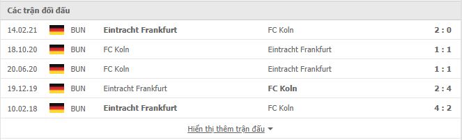 Lịch sử đối đầu Eintracht Frankfurt vs FC Koln