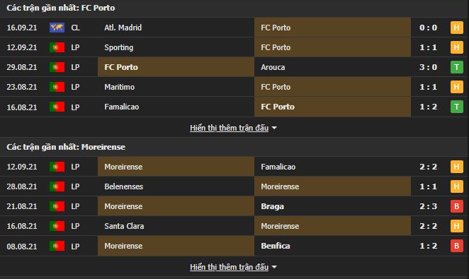 Không chỉ có thực lực vượt trội mà còn áp đảo FC Porto về thành tích đối đầu trong quá khứ. Cụ thể, các cầu thủ FC Porto toàn thắng cả 12 lần mở cửa tiếp đón Moreirense tới làm khách. Do đó, khả năng cao FC Porto sẽ có được chiến thắng dễ dàng ở trận đấu này. Kèo châu Á chủ nhà chấp 1.5/2 và tài xỉu 3 trái, chọn đội chủ nhà và tài đặt kèo hợp lí hơn cả.