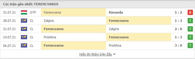 - Phong độ Ferencvarosi TC
