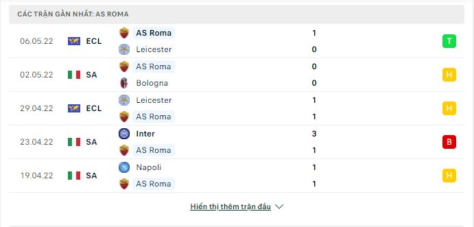 Đúng như dự đoán của giới chuyên môn, AS Roma với điểm tựa sân nhà đã không làm các CĐV thất vọng khi vượt qua Leicester ở trận bán kết lượt về UEFA Europa Conference League để điền tên mình vào trận đấu cuối cùng. Ở sân chơi quốc nội, Bầy sói không còn cơ hội chen chân vào một vị trí trong top 4 và chỉ có thể xây chắc tấm vé góp mặt ở UEFA Europa League mùa tới. Có thể nói kết quả trong chuyến làm khách trên sân Stadio Artemio Franchi của Fiorentina ở vòng 36 tới đây sẽ có tính chất quan trọng với Bầy sói khi một chiến thắng sẽ giúp họ cắt đuôi chính đại diện xứ Tuscany trên BXH.