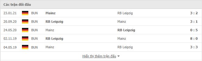 Lịch sử đối đầu FSV Mainz 05 vs RB Leipzig