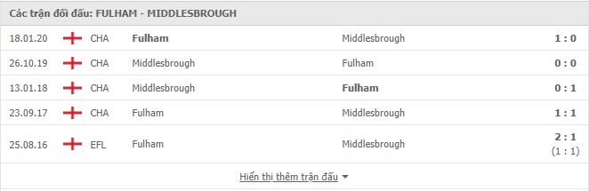 Lịch sử đối đầu Fulham vs Middlesbrough