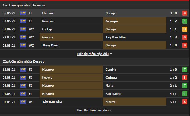 Phong độ gần đây Georgia vs Kosovo: