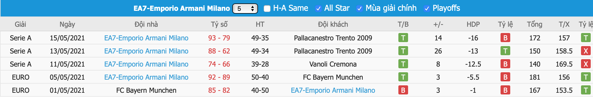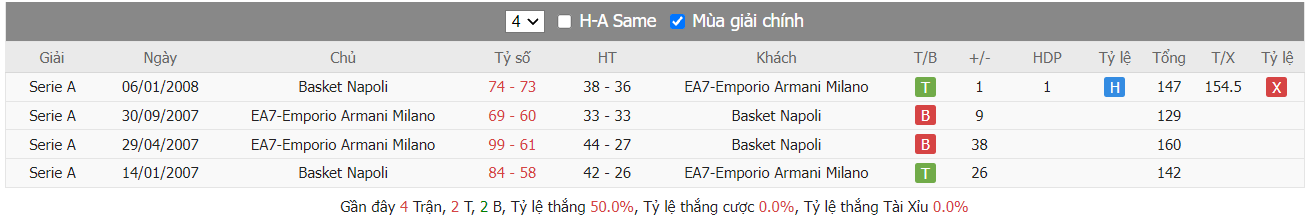 Thành tích đối đầu GeVi Napoli vs EA7-Emporio Armani Milano