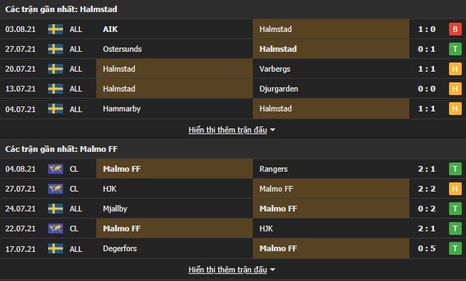 Phong độ gần đây Halmstad vs Malmo: