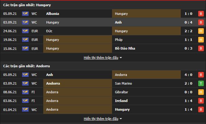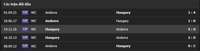 Thành tích đối đầu Hungary vs Andorra: