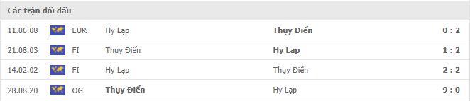 Thống kê phong độ gần đây Hy Lạp vs Thụy Điển