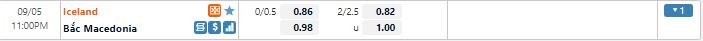 Bảng tỷ lệ kèo trực tuyến trận đấu Iceland vs Bắc Macedonia: