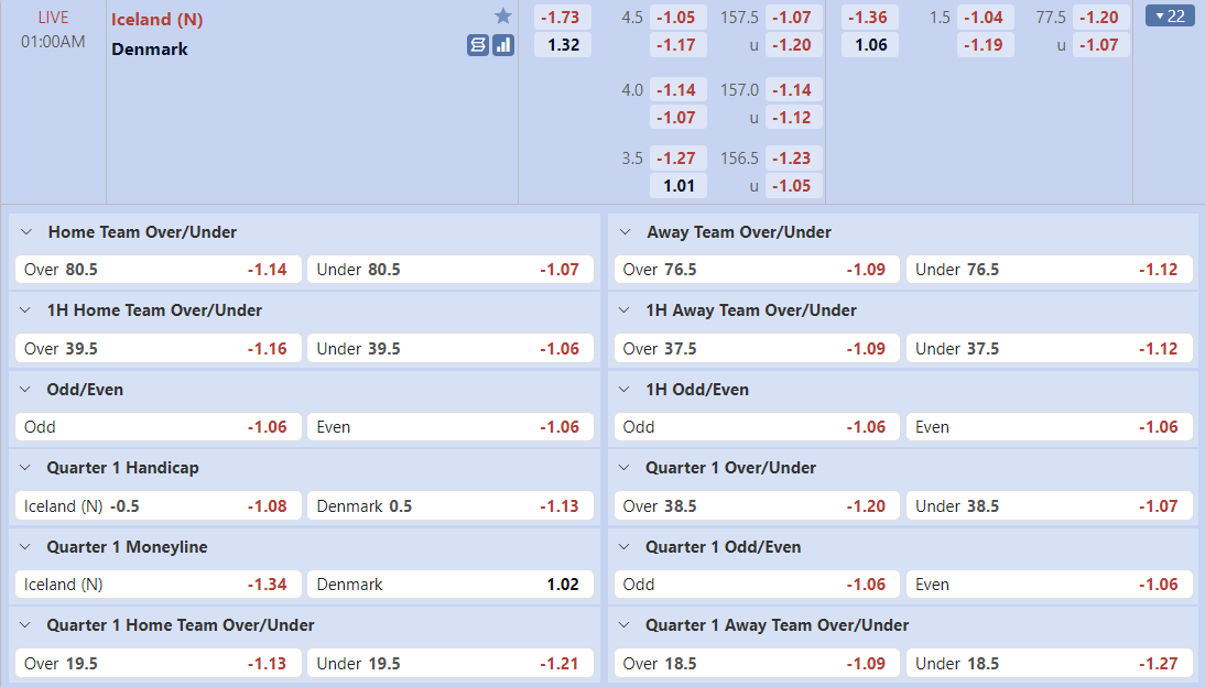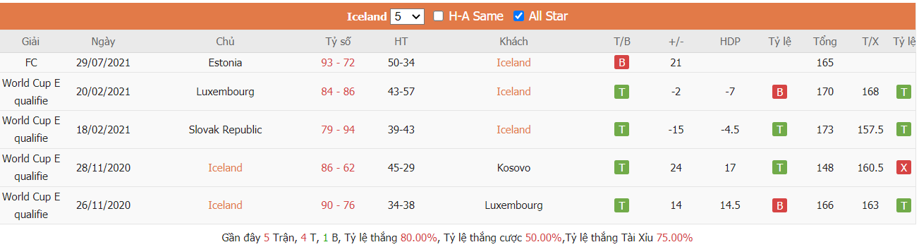 Thống kê cho thấy đây cứ trung bình mỗi trận sau tổng số 10 trận ra sân gần nhất Denmark cũng đều duy trì được sự phòng khoáng trong lối chơi khi mà trên hàng công đã ghi được trung bình tới 85 điểm mỗi trận và cũng đã để đối thủ bỏ vào rổ nhà trung bình tới 83 điểm mỗi. Từ đó dẫn tới 6 trên 10 trận đấu kể trên đều đã khép lại với các kết quả chung cuộc nổ tài. Vậy nên khả năng bùng nổ tỷ số ở trận tới cũng rất đáng được kỳ vọng khi mà cũng đã tới 7 trên 10 trận ra sân gần nhất của Iceland cũng đều đã vượt qua mức kèo niêm yết theo TLCA. Đồng thời Iceland cũng đã ghi được trung bình tới 87 điểm mỗi trận sau tổng số 10 trận ra sân gần nhất.